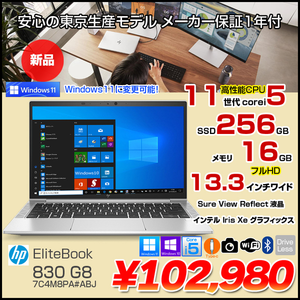【新品パソコン】HP EliteBook 830 G8 7C4M8PA#ABJ Win10Pro Windows11対応 Sure View Reflect液晶 [Corei5 1145G7 16B 256GB 無線 カメラ Type-C 13.3型 フルHD] :新品
