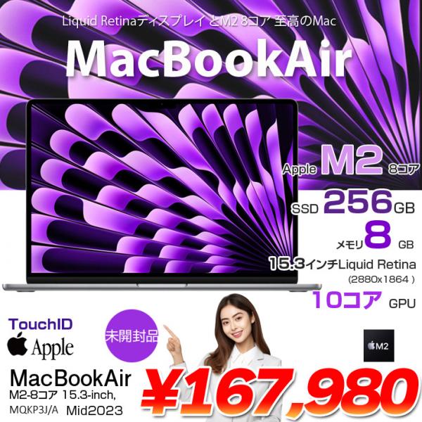 【中古パソコン】Apple MacBook Air 15inch MQKP3J/A A2941 2023 TouchID [Apple M2 8コア メモリ8G SSD256GB 無線 BT カメラ 15.3 Space Gray 純箱] :未開封
