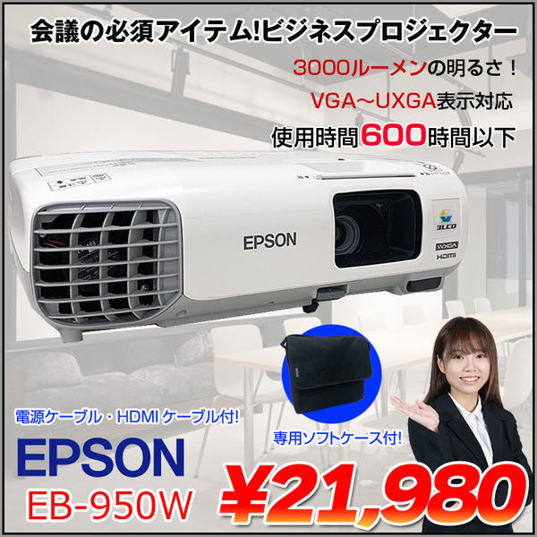 【使用時間600h以下】EPSON 液晶プロジェクター EB-950W 3000lm WXGA 3LCD方式 学校 ビジネスにおすすめ:訳あり