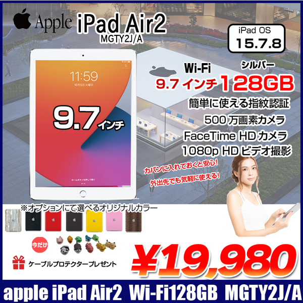 【中古iPad】Apple iPad Air2 MGTY2J/A Retina Wi-Fi 128GB A1566 選べるカラー [ A8X SSD128GB 9.7インチ iPadOS 15.7.8 シルバー ] :良品 中古 アイパッド 本体