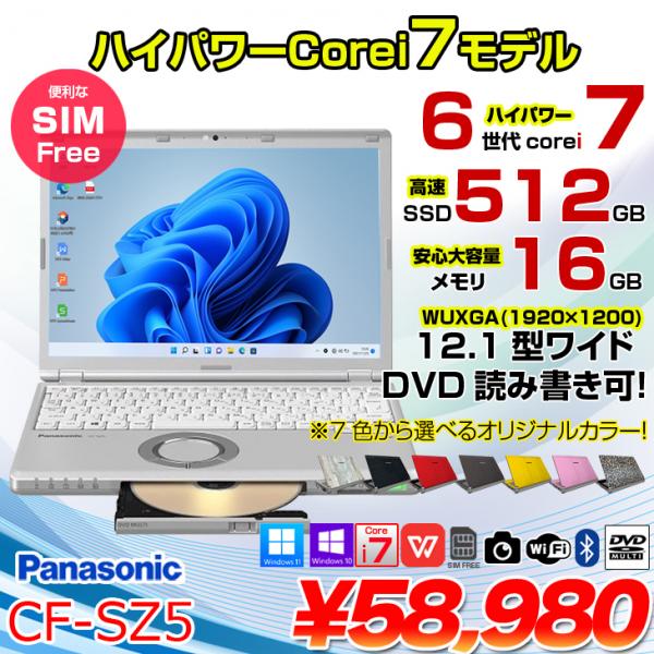 【中古パソコン】Panasonic CF-SZ5 中古 レッツノート Office Win10 [Core i7 6600U メモリ16GB SSD512GB マルチ 無線 WWAN カメラ 12.1型] :良品