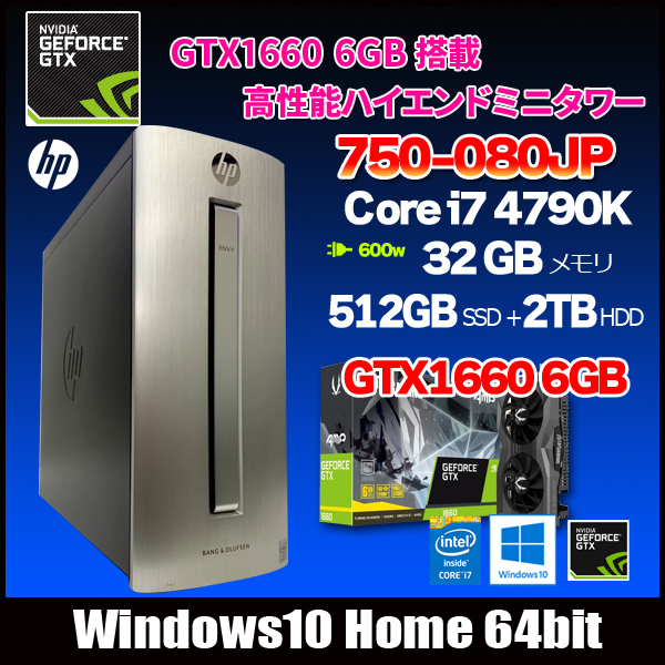 【中古パソコン】HP 750-080JP ゲーミングパソコン eスポーツ GTX1660搭載 Windows10 Office [Corei7 4790K 4.0GHz メモリ32G HDD2TB+ SSD512GB マルチ 電源600W]:良品