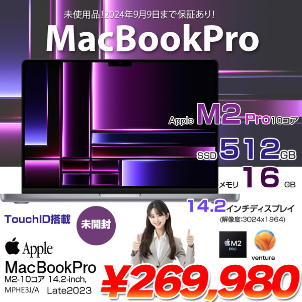 【中古パソコン 未開封】Apple MacBook Pro 14.2inch MPHE3J/A A2779 Late 2023 TouchID [Apple M2 Pro 10コア 16GB SSD51