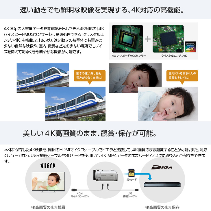 Panasonic HC-VX980M デジタル4Kビデオカメラ 光学20倍ズーム 829万画素 1/2.3型MOSセンサー 64GBメモリ あとから補正 バッテリー HDMI ブラウン