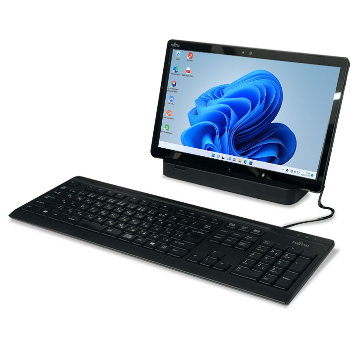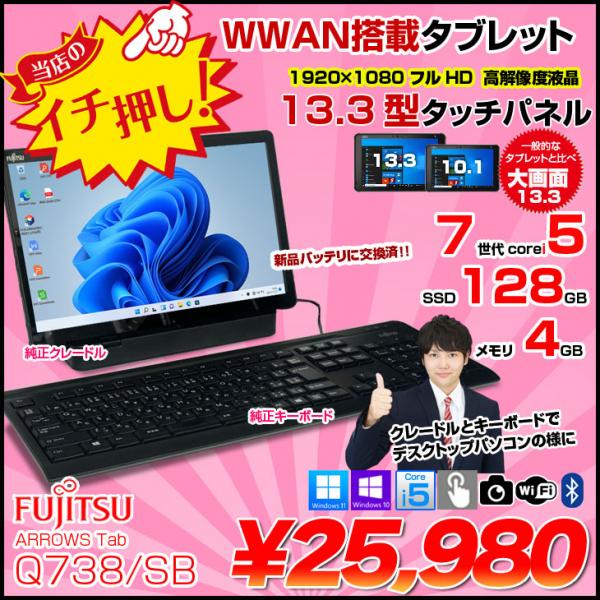 【中古パソコン】富士通 ARROWS Tab Q738/SB 中古 タブレット 選べる Win11 or Win10 フルHD 今だけ純正クレードル&純正キーボード付属[Corei5 7300U 2.6GHz 4GB 128GB 無線 BT カメラ 13.3型 ] :良品