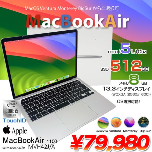 【中古パソコン】Apple MacBook Air 13.3inch MVH42J/A A2179 TouchID 2020 選べるOS [core i5 1030NG7 8G SSD512GB 無線 BT カメラ 13.3インチ Silver 純箱 ] :良品