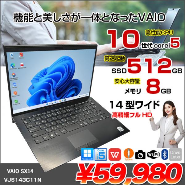 【中古パソコン】SONY VAIO SX14 VJS143C11N 中古 ノートOffice Win11Home 第10世代[Core i5 1035G1 8GB SSD512GB 無線 カメラ 14型] :美品