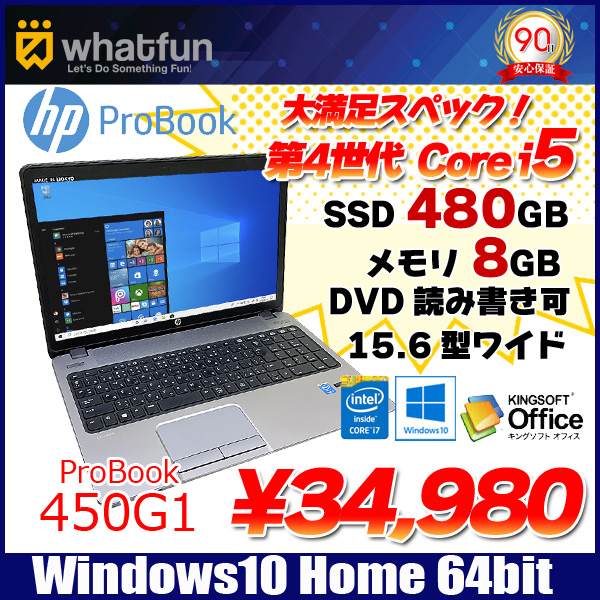 【中古パソコン】HP 450G1 中古 ノートパソコン Office Win10 高速SSD テンキー [core i5 4200M 2.5GHz 8GB SSD480GB マルチ 15.6型 BT USB3.0 ] :アウトレット