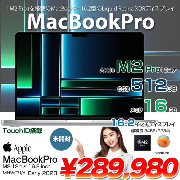 【中古パソコン 未開封品】Apple MacBook Pro 16inch MNWC3J/A A2780 Early 2023 TouchID 19コアGPU [Apple M2 Pro 12コア 16G SSD512GB 無線 BT カメラ Silver ] :未開封