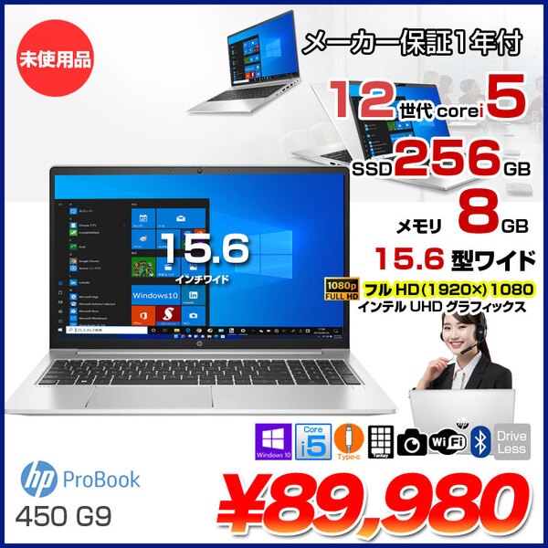 【未使用品】HP ProBook 450 G9 未使用 ノート Office Windows10 第12世代 フルHD [Core i5 1235U メモリ8GB 256GB 無線 カメラ テンキー 15.6型] :未使用品
