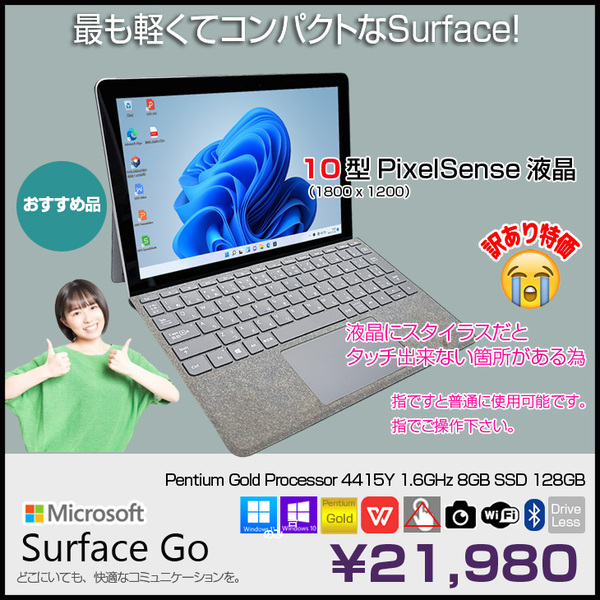 Microsoft Surface GO 中古 2in1 タブレット 選べる Win11 or Win10 カメラ [Pentium Gold 4415Y 8GB 128GB 無線 10型]:訳あり品(タッチ△)