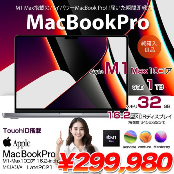 【中古パソコン】Apple MacBook Pro 16inch MK1A3J/A A2485 Late 2021 TouchID 選べるOS [Apple M1 Max 10コア 32G SSD1TB 無線 BT カメラ 16.2 Space Gray 純箱]:良品
