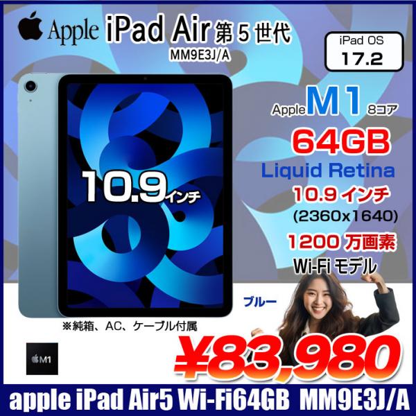 【中古iPad】Apple iPad Air 第5世代 Air5 Liquid Retina Wi-Fi 64GB A2588 MM9E3J/A [Apple M1 8コア 64GB 10.9 iPadOS 17.2 ブルー ] :美品