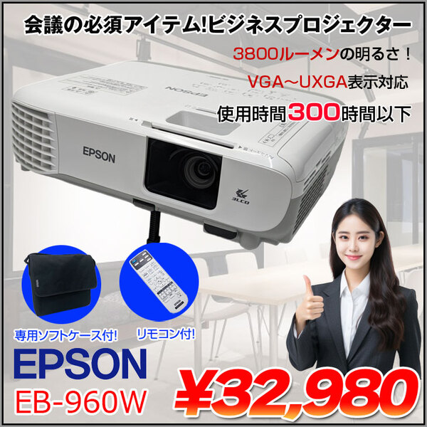 EPSON 液晶プロジェクター EB-960W 使用300時間以下 3800lm UXGA 3LCD方式 HDMI リモコン 専用バッグ付属:良品