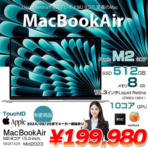 【中古パソコン 未開封品】Apple MacBook Air 15.3inch MQKT3J/A A2941 2023 macOS Ventura TouchID [Apple M2 8コア 8G SSD512GB 無線 BT カメラ 15.3 Silver] :未開封品