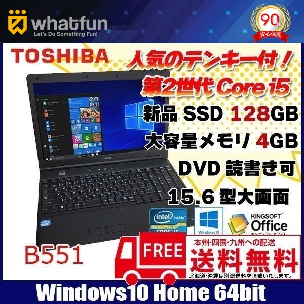 【中古パソコン】 東芝 B551 中古 ノートパソコン Office Win10Home 第2世代 テンキー [core i5 2410M 2.3ghz 4G SSD128GB マルチ 15.6型 無線] :良品