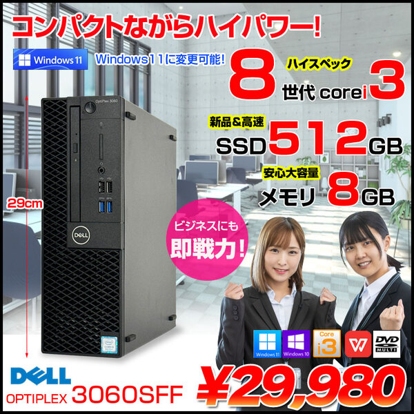 【中古パソコン】DELL OptiPlex 3060 SFF 中古 デスク Office 選べるWin10 or Win11 第8世代[Core i3 8100 メモリ8GB SSD512GB マルチ]:良品