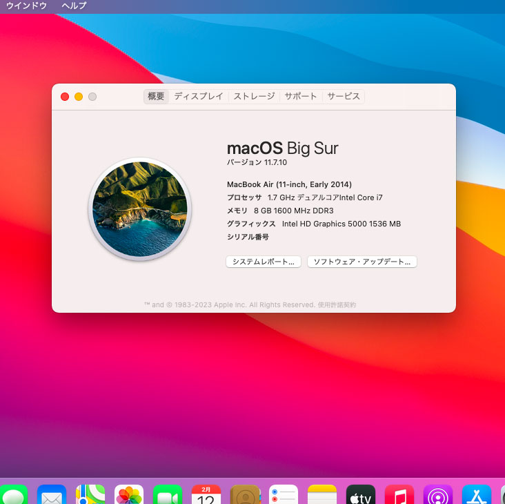 【中古パソコン】Apple MacBook Air 11.6inch MD712J/B A1465 Early 2014 [core i7 4650U メモリ8GB SSD512GB 無線 BT カメラ 11.6インチ BigSur 11] :良品