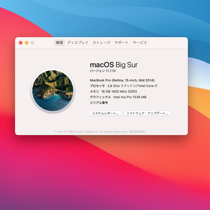 【中古パソコン】Apple MacBook Pro 15.4inch MGXC2J/A A1398 Mid 2014 [core i7 4980HQ メモリ16GB SSD512GB 無線 BT 15.4 macOS BigSur] :良品