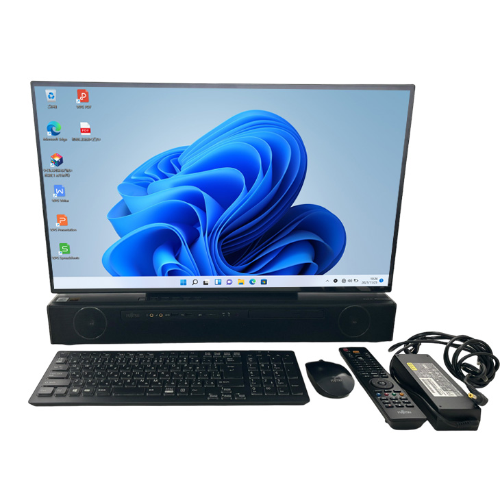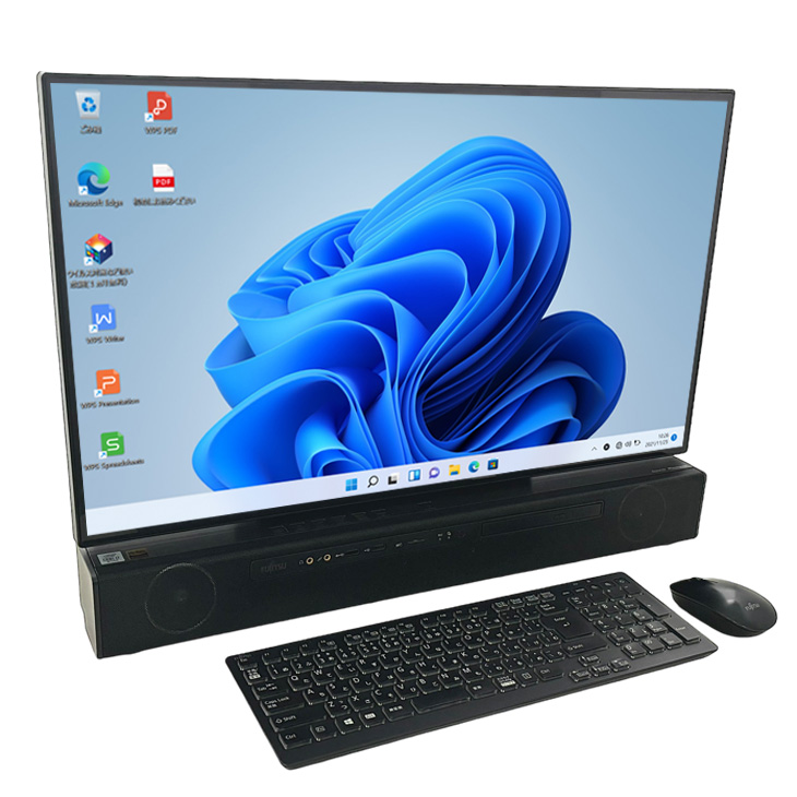 【中古パソコン】富士通 ESPRIMO WF2/E2 中古 一体型 地デジ Office Win11home キーマウス[Core i7 10750H 16GB SSD512GB+HDD1TB DVDマルチ 無線 BT カメラ 27型 黒]:良品