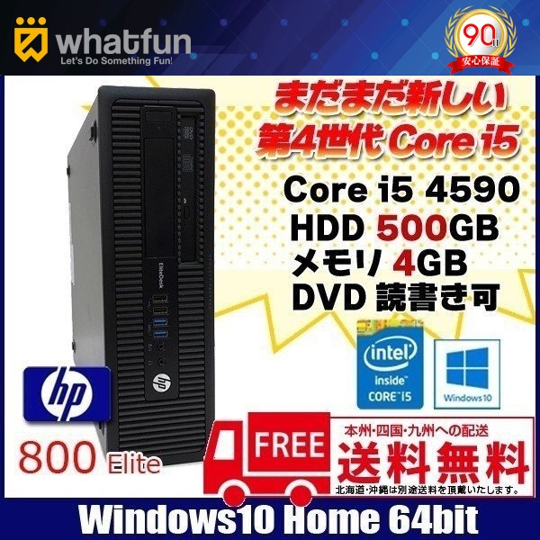 【中古パソコン】HP EliteDesk800 SFF 中古 デスクトップパソコン Win10 Home 64bit 第4世代 [core i5 4590 3.3GHz メモリ4G HDD500GB マルチ USB3.0]DtoD領域有