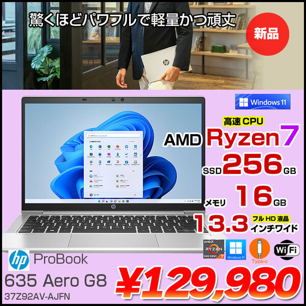 【新品パソコン】HP ProBook 635 Aero G8 37Z92AV-AJFN Win11Pro [Ryzen7 5800U 16GB 256GB 無線 カメラ Type-C フルHD 13.3型] :新品