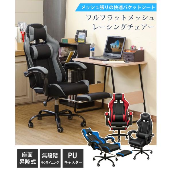 フルフラットメッシュレーシングチェア BK/BL/GR/RD