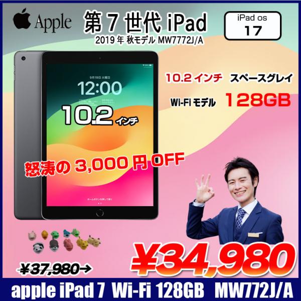 【中古iPad】Apple iPad7 第7世代 MW772J/A Wi-Fi 2019 128GB A2197 選べるオリジナルカラー [ A10 SSD128GB Retina 10.2 iPadOS 17 スペースグレイ] :良品