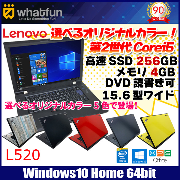 【中古パソコン】Lenovo L520 中古 選べるカラー Office Win10 カメラ [core i5 2410M 2.3GHz 4G SSD256GB マルチ 15.6型 ] :アウトレット