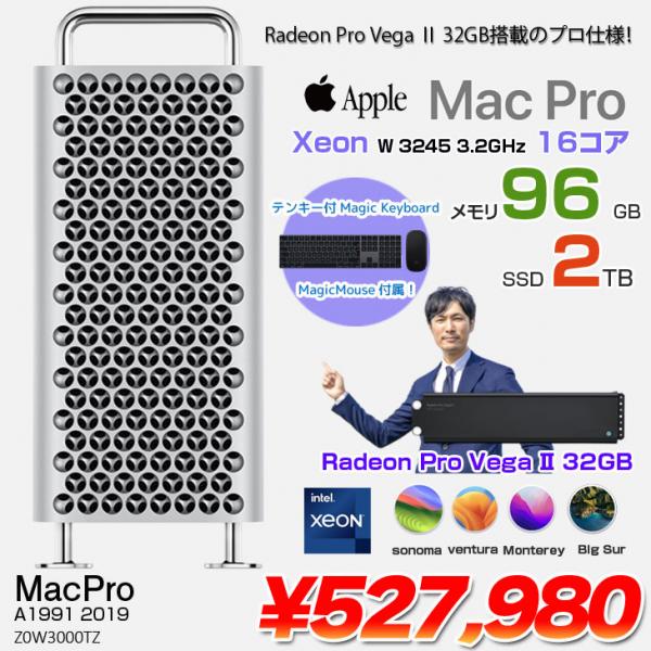 【中古パソコン】Apple Mac Pro Z0W3000TZ A1991 2019 Radeon Pro Vega II 32GB搭載 [Xeon W-3245 16コア メモリ96GB SSD2TB 選べるOS 無線 BT ] :良品