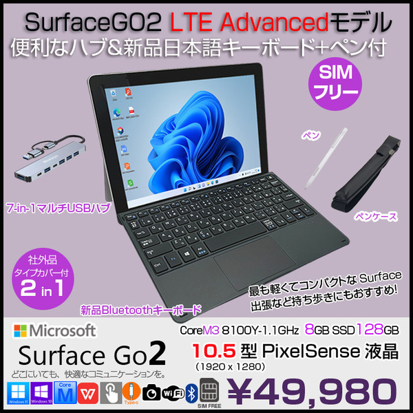 【今だけペン+ケース+7inハブ】Microsoft Surface GO2 SUF-00011 SIMフリー 中古 タブレット Office 新品カバー [Core m3 8100Y 8G 128G カメラ 10型]:良品