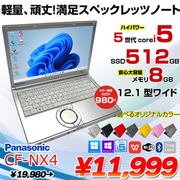 【中古パソコン】Panasonic CF-NX4 中古 レッツノート 選べるカラー+980円 Office Win10 or Win11 第5世代[Core i5 5300U 8GB SSD512GB 無線 12.1型 ] :アウトレット