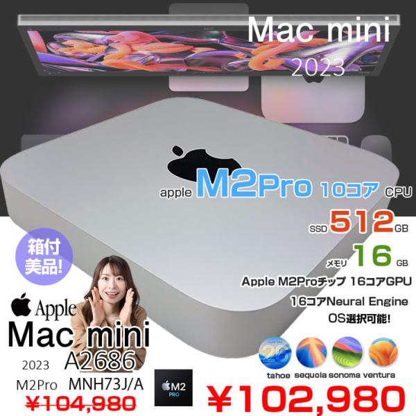 【中古パソコン】Apple Mac mini MNH73J/A A2686 M2 Pro 2023 小型デスク 選べるOS [Apple M2 Pro 10コア メモリ16GB SSD512GB 無線 BT シルバー 純箱 ]:美品