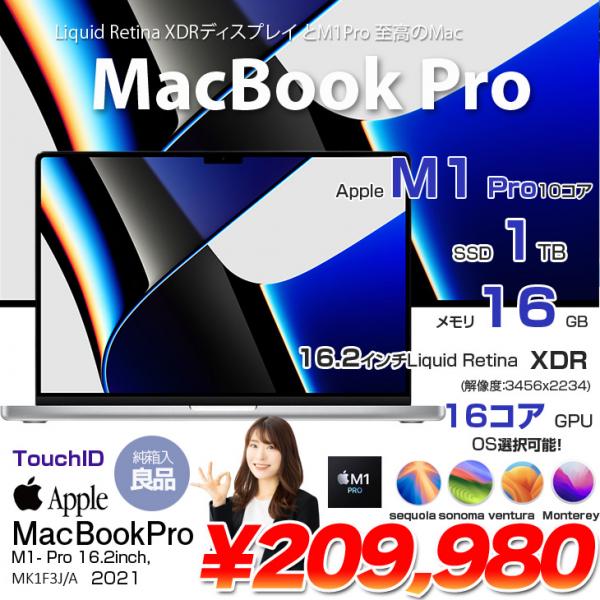 【中古パソコン】Apple MacBook Pro 16inch MK1F3J/A A2485 Late 2021 TouchID 選べるOS [Apple M1 Pro 10コア 16G SSD1TB 無線 BT カメラ 16.2 Silver ] :良品