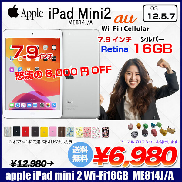 【中古iPad】Apple iPad mini2 ME814J/A A1490 au Wi-Fi+Cel 16GB 選べるカラー [ A7 16GB(SSD) 7.9インチ OS 12.5.7 シルバー] :良品 中古 アイパッドミニ 本体