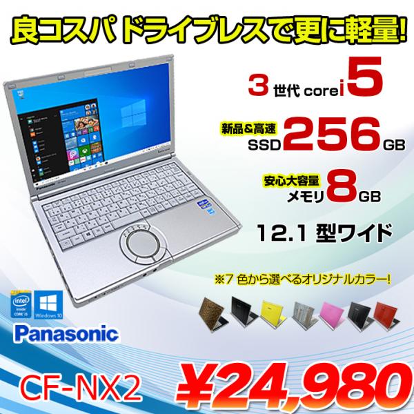 【中古パソコン】Panasonic CF-NX2 選べるオリジナルカラー 中古 ノートパソコン Office Win10 [core i5 3320M 2.6GHz 8GB SSD256G 無線 12.1型 ] :アウトレット