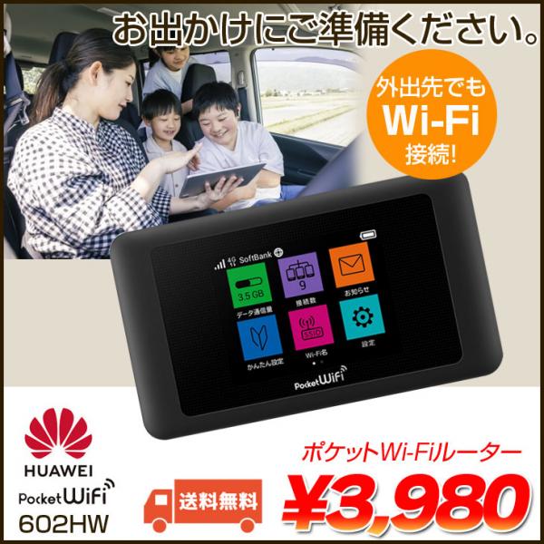 中古 ソフトバンクモバイル 602HW ポケット Wifiルーター SIMフリー [IEEE802.11a/b/g/n/ac HUAWEI製 ブラック]:良品