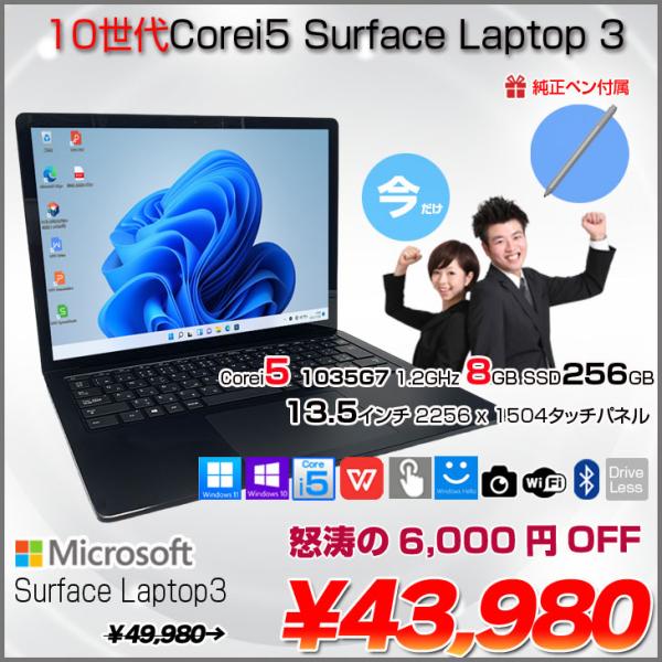 【中古パソコン】Microsoft Surface Laptop3 中古 ノート Office Win10 or Win11 タッチパネル 高解像度 [Core i5 1035G7 8GB 256GB 無線 カメラ 13.5 ]:良品
