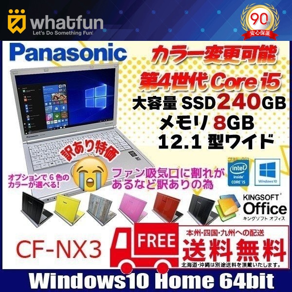 【中古パソコン】Panasonic CF-NX3 選べるカラー 中古 ノート Office Win10 第4世代 [core i5 4300U 1.9GHz 8G SSD240GB BT 12.1型 ] :訳あり品2