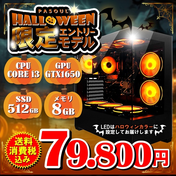 【ハロウィンカラーLEDバージョン】ゲーミングPC デスクトップパソコン GP-V3 ブラック/ホワイト ピラーレス GTX1650 第12世代 Intel Corei3 12100F Win10 or Win11 NVMe M.2 SSD500GB メモリ8GB eスポーツ PASOUL 極 1年保証