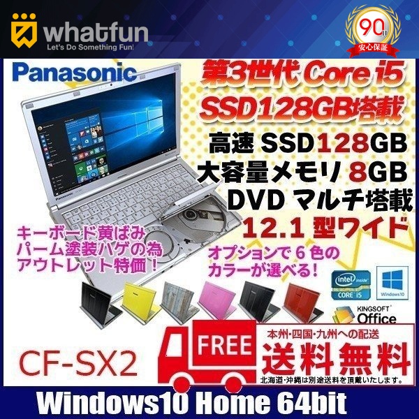 【中古パソコン】Panasonic CF-SX2 選べるオリジナルカラー 中古 ノート Office Win10 [core i5 3340M 2.70GHz 8G 128GB SSD マルチ 無線 カメラ 12.1型 B5 ] :アウトレット2