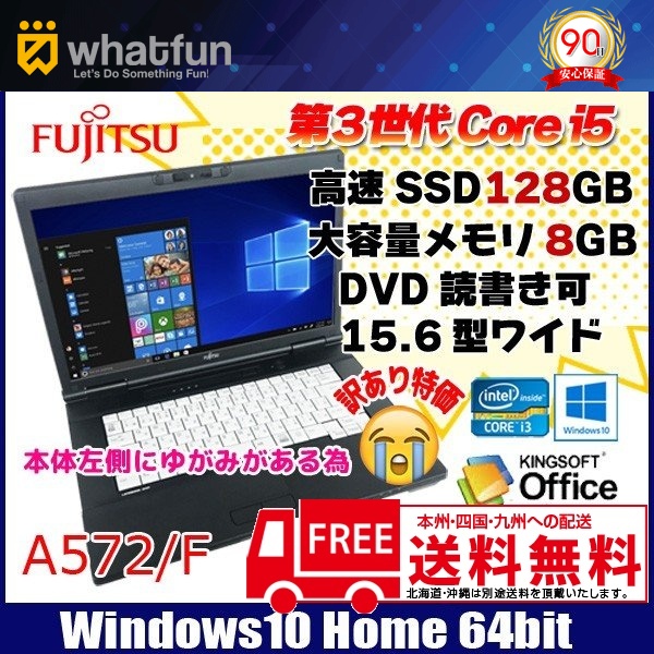 【中古パソコン】富士通 A572F 中古 ノート Office Win10 高速SSD塔載 第三世代 [core i5 3320M 2.6GHz 8G SSD128GB マルチ 15.6型 A4 USB3.0 HDMI無線]:アウトレット