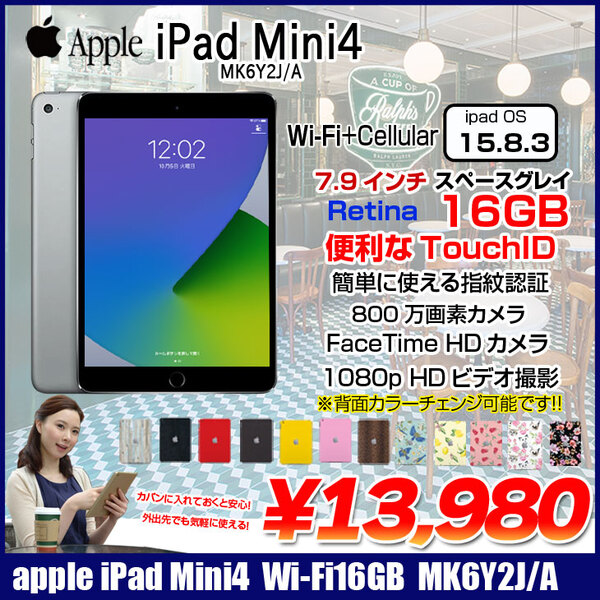 【中古iPad キャリア不明】Apple iPad mini4 MK6Y2J/A Wi-Fi+Cellular 16GB 選べるカラー [A8 16GB 7.9インチ OS 15.8.3 スペースグレイ ] :アウトレット 中古