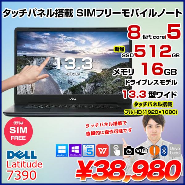 【中古パソコン SIMフリー】DELL Latitude 7390 中古 ノート タッチパネル 選べるOS 第8世代[Core i5 8250U 16GB SSD512GB 無線 WWAN BT カメラ 13.3型] :アウトレット