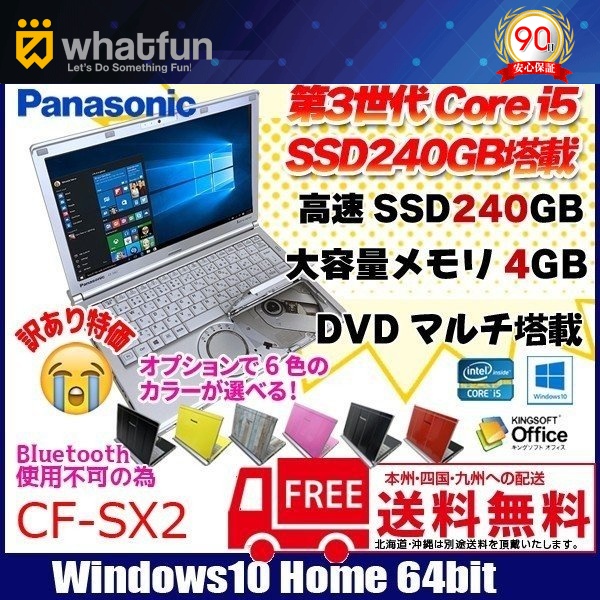 【中古パソコン】Panasonic CF-SX2 選べるオリジナルカラー 中古 ノート Office Win10 [core i5 3320M 2.6GHz 4G SSD240GB マルチ 無線 カメラ 12.1型 ] :訳あり品(2)