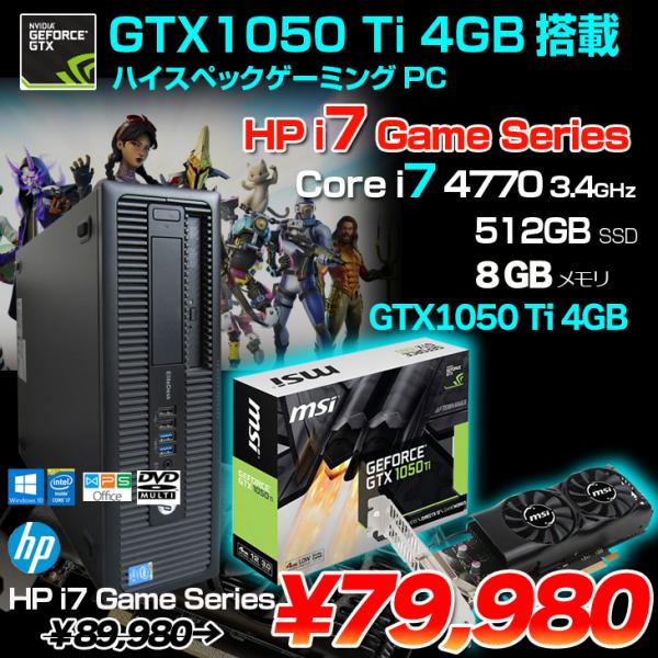 【中古パソコン】HP i7 GameSeries eスポーツ GTX1050Ti搭載ゲーミング Office Win10 第4世代 [Core i7 4770 メモリ8GB SSD512GB マルチ] :良品