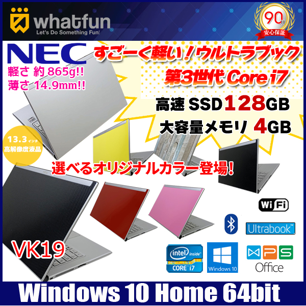 【中古パソコン】NEC VK19 ウルトラブック 選べるカラー 中古ノート Win10 Office 第3世代 [core i7 3517U 1.9GHz 4G SSD128GB 13.3型 BT ]:アウトレット