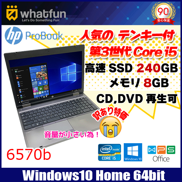 【中古パソコン】HP 6570b 中古 ノートパソコン Office Win10 高速SSD テンキー [core i5 3230M 2.6GHz 8GB SSD240GB ROM 15.6型 USB3.0 ] :訳あり品