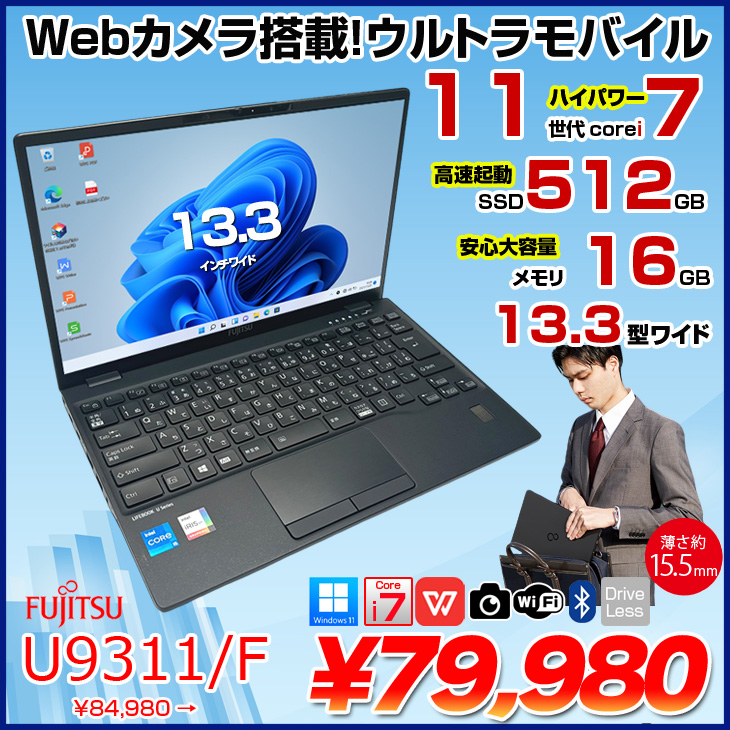 【中古パソコン】富士通 LIFEBOOK U9311/F 中古 ノート Office Win11 第11世代[Core i7 1185G7 メモリ16GB SSD512GB カメラ 13.3]:良品