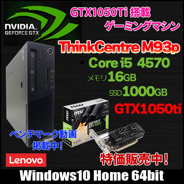 【中古パソコン】Lenovo M93p SFF Pro ハイブリッド ゲーミングパソコン GTX1050Ti搭載 Windows10 第4世代 [core i5 4570 3.2GHz メモリ16G SSD1TBマルチ ]良品